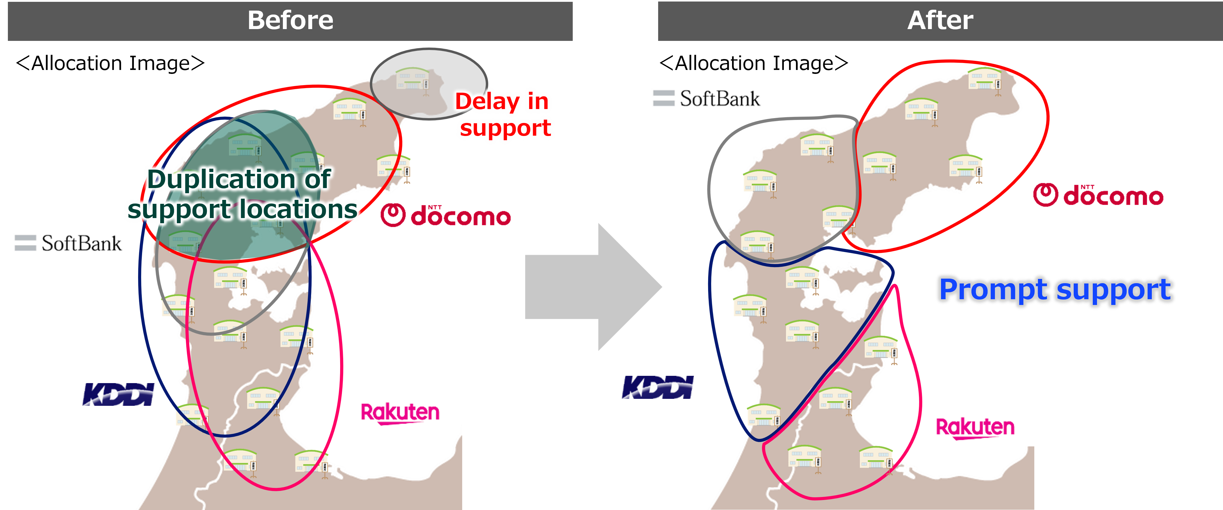 Additionally, by standardizing the content of information dissemination and utilizing a common logo for the evacuation shelter support areas provided by each telecommunications carrier, the companies will strive to make information more easy to understand for all stakeholders.